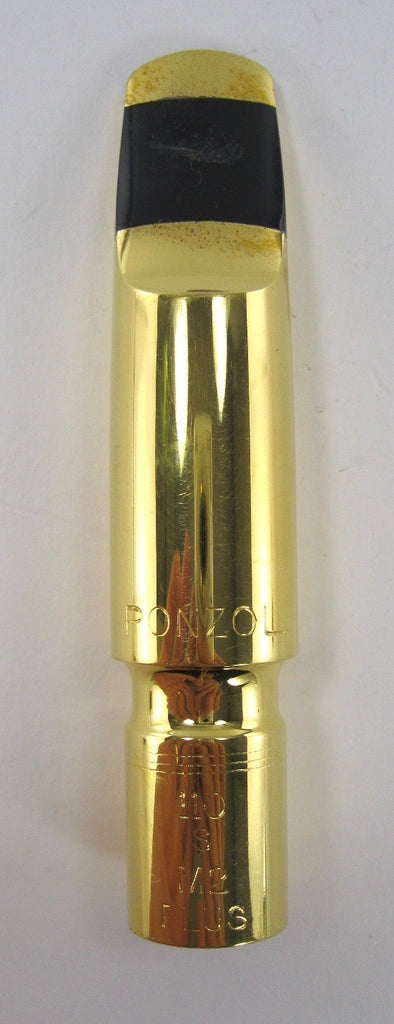 Vintage Ponzol M2 Plus S Tenor Saxophone Mouthpiece. Tip opening measures .110. Gold plated brass. Some wear on the bite plate; otherwise, excellent condition.