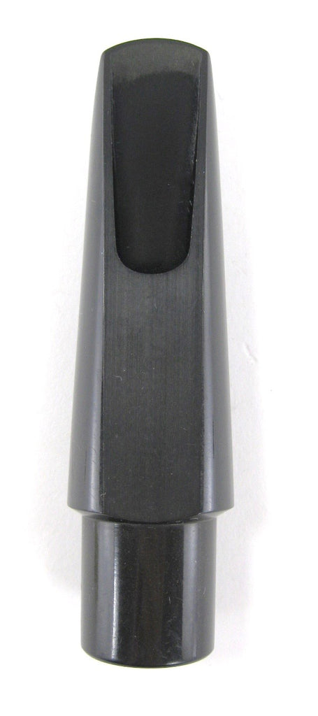 This is an unmarked tenor saxophone mouthpiece. Previous owner claimed it was custom-made for him years ago by Jody Espina (Jody Jazz). It is a streamlined-body hard rubber mouthpiece with medium chamber. Tip opening measures .105. Excellent condition.