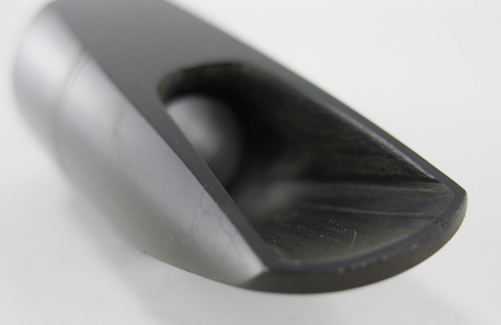 Vintage Vandoren Hard Rubber Soprano Saxophone Mouthpiece. Tip opening measures .045. There are some heavy interior scratches from cleaning but it is still in good playing condition.